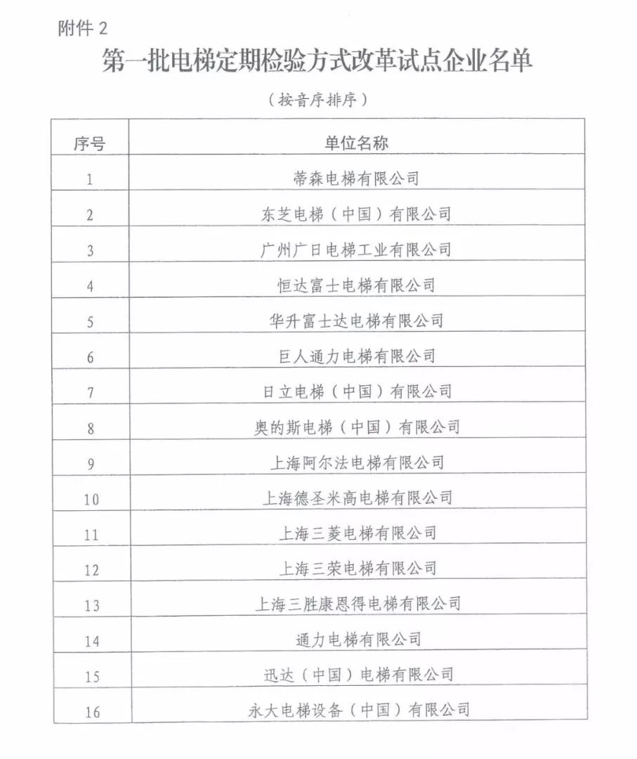 為了減少電梯事故的發生,增加電梯質量水準,依據上海市電梯使用情況,根據《市場監管總局關于同意在上海市開展電梯定期檢驗方式改革試點的批復》(國市監特函〔201896號)要求,特決定自2018年9月2020年9月,在上海市,選擇部分電梯商,開展電梯定期檢驗方式改革試點